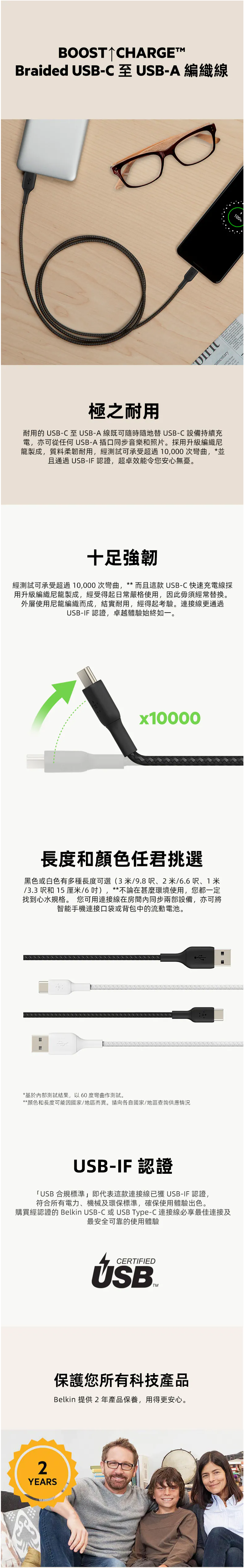 - BoostCharge USB-C 至 USB-A 編織連接線 (15W) x 1