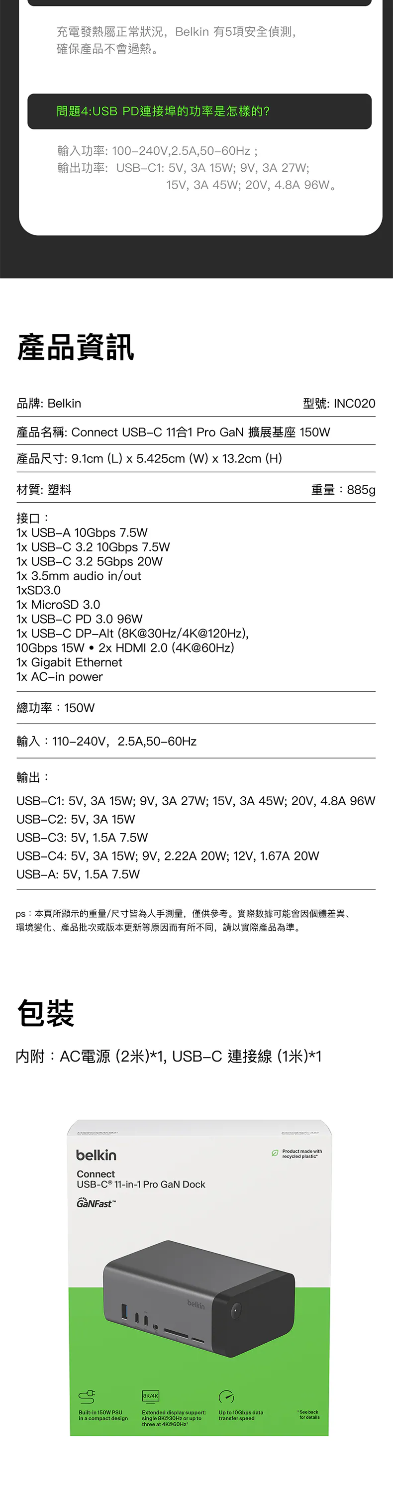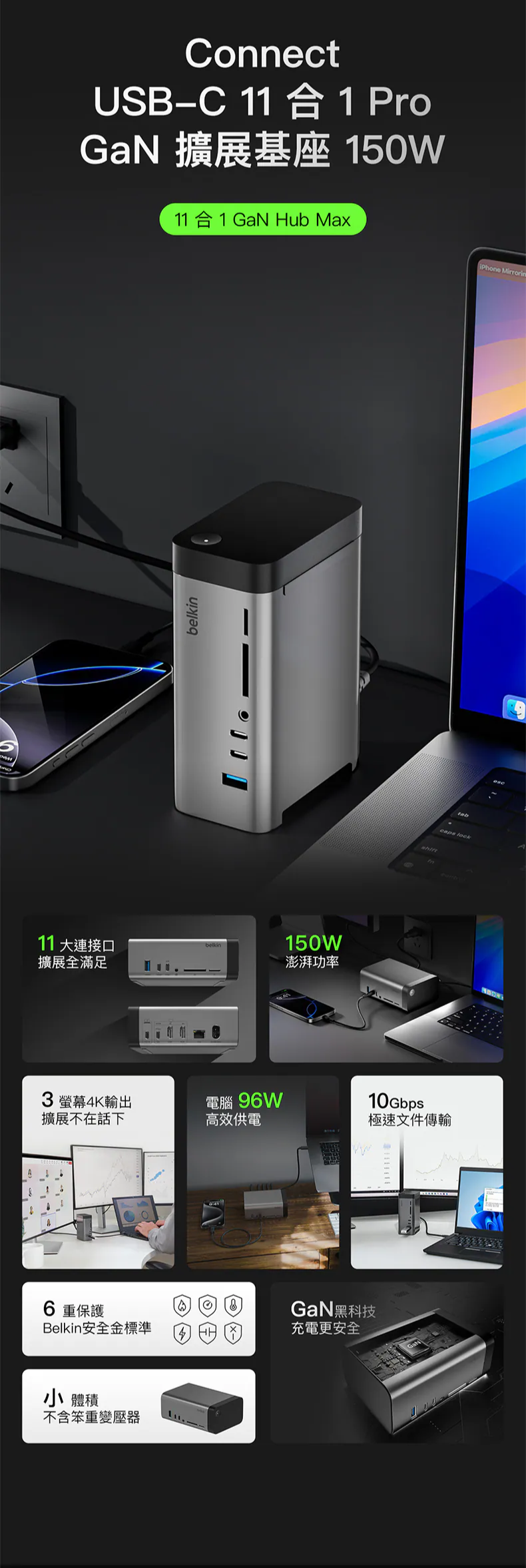 - Connect USB-C 11 合 1 核心 GaN 150W x 1