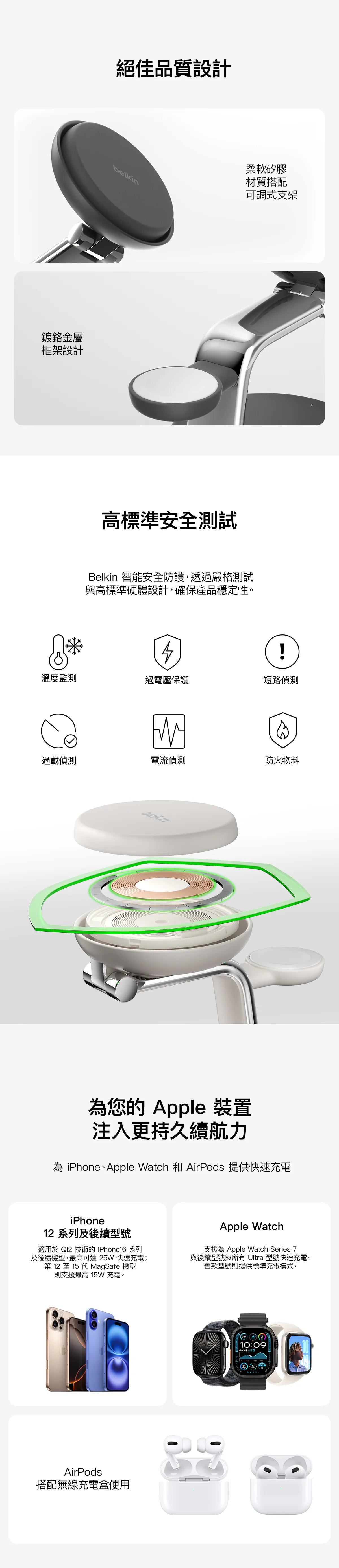 - 手機最高達 25W, Apple Watch 5W, AirPods 5W