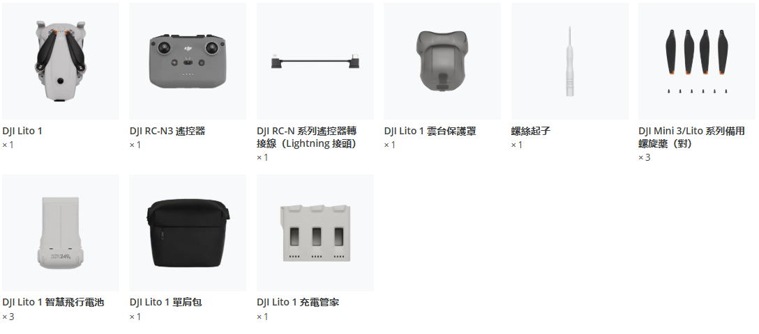 DJI Lito 1 暢飛套裝 Fly More Combo(配備 DJI RC‑N3 遙控器)|4K 航拍・O4 圖傳・全向避障・36 分鐘續航・249 g 入門級最強 Drone 航拍機 DJI Lito 1 是 DJI 最新推出嘅 入門級 4K 航拍機,主打 輕巧、易飛、安全、畫質高,非常適合 新手航拍、旅遊拍攝、Vlog、戶外活動記錄。 暢飛套裝配備 DJI RC‑N3 遙控器、三電池充電管家、額外配件,一次過滿足航拍所需。 4K HDR 超清航拍・1/2” CMOS 感光元件 ・支援 4K 60fps ・支援 4K 100fps ・1/2” CMOS 感光元件 ・色彩自然、細節清晰 ・適合旅遊、城市、山景、海邊航拍 全向避障 + 智能返航(RTH) ・前後左右上下 全向避障感應器 ・自動偵測障礙物,降低撞機風險 ・低電量 / 信號弱自動返航 ・新手飛行更安全、更放心 O4 圖傳技術・最遠 15 公里穩定傳輸 ・DJI 最新 O4 圖傳系統 ・最遠 15 公里 1080p 低延遲傳輸 ・抗干擾能力強,城市環境更穩定 配備 DJI RC‑N3 遙控器・操控更精準 ・支援 O4 圖傳 ・低延遲、反應快 ・手感佳、操控穩定 ・適合新手與進階玩家 36 分鐘續航・外出拍攝更耐玩 ・單電池最長 36 分鐘 ・暢飛套裝附 三電池充電管家 ・一次外出可飛超過 90 分鐘 ・適合旅遊、戶外活動、長時間拍攝 智能拍攝模式・一鍵出片 ・QuickShots(環繞、螺旋、拉遠等) ・自動跟隨(ActiveTrack) ・航點飛行 ・適合 Vlog、旅遊、短片創作者 249 g 輕巧便攜・摺疊設計 ・摺疊後體積小 ・放入背包即可出發 ・適合旅遊、戶外拍攝