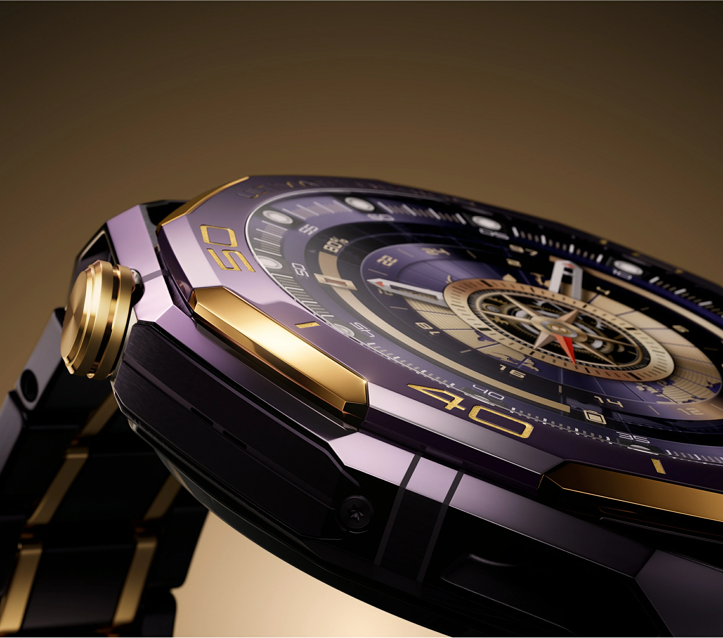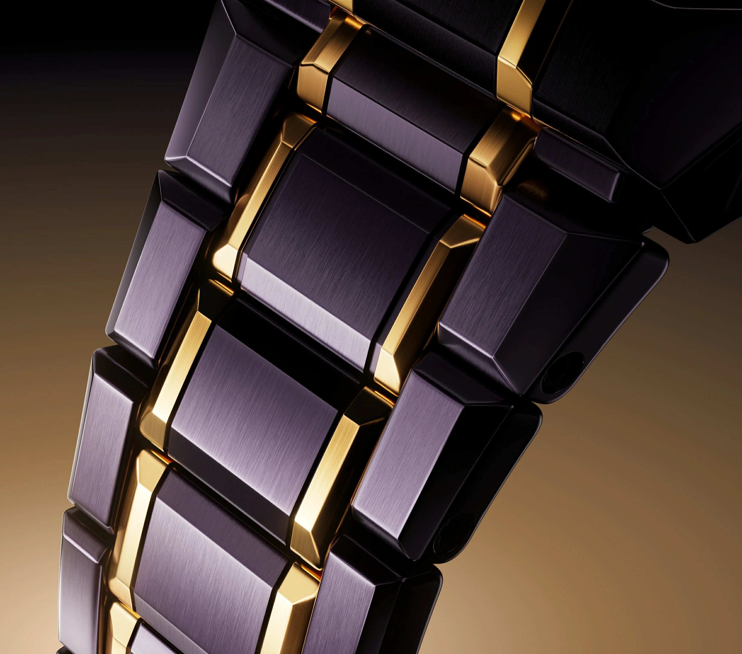 - 紫金色鈦金屬錶帶(產品包裝內附贈紫色氟橡膠錶帶,包括標準長度和加長尺寸)