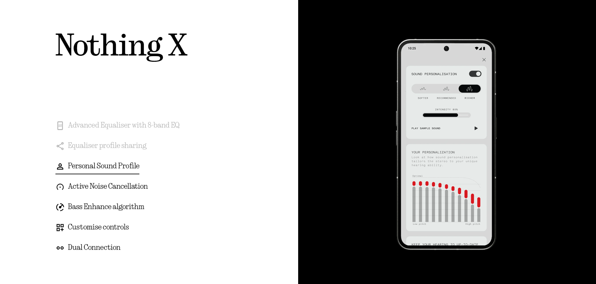 - All features available on Nothing OS and the Nothing X app for iOS and other Android devices